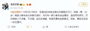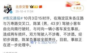 2025-10-04 12:18 北京交警通報陳震發(fā)生車禍