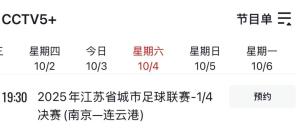 2025-10-04 11:21 央視將直播蘇超淘汰賽