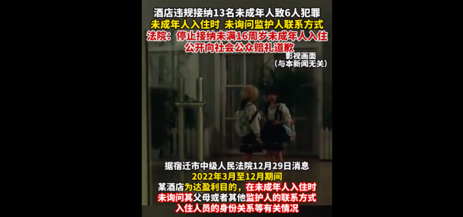 酒店違規(guī)接納13名未成年人致6人犯罪2024-01-03 08:41:05