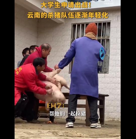 首批回家的大學(xué)生已經(jīng)開始?xì)⒇i了,按豬刮豬毛一項不落