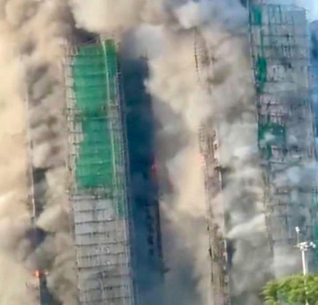 從火情發(fā)展脈絡(luò)來看,這場災(zāi)難的蔓延速度極為迅速。當(dāng)日14時51分,宏昌閣10層外墻施工的竹制棚架率先冒煙,12分鐘后火勢借助冬季干燥強(qiáng)風(fēng)與高層“煙囪效應(yīng)”竄至相鄰樓宇,火警升至三級。下午15時34分,火焰突破15層高度,伴隨疑似燃?xì)夤藁螂娖鞯谋?,正式升級為四級火警。由于火勢繼續(xù)擴(kuò)大并向周邊蔓延,到了當(dāng)日下午6時22分又升為五級火警,這意味著火勢已失控蔓延至多棟建筑,且存在大規(guī)模坍塌風(fēng)險。