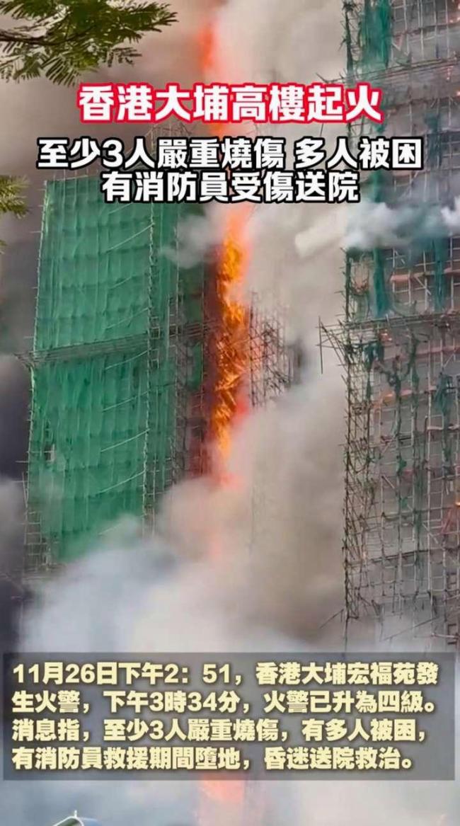 香港大樓起火從地面燒到樓頂 火勢失控致13死28傷!2025年11月26日下午,香港大埔區(qū)宏福苑的一片建筑群突發(fā)火災(zāi),黑色濃煙在城市上空蔓延數(shù)公里,多棟高層樓宇外墻同時燃起上百米高的火舌,燃燒物如隕石般從高空墜落。這場災(zāi)難最終升級為香港消防體系中“極罕見五級火警”。