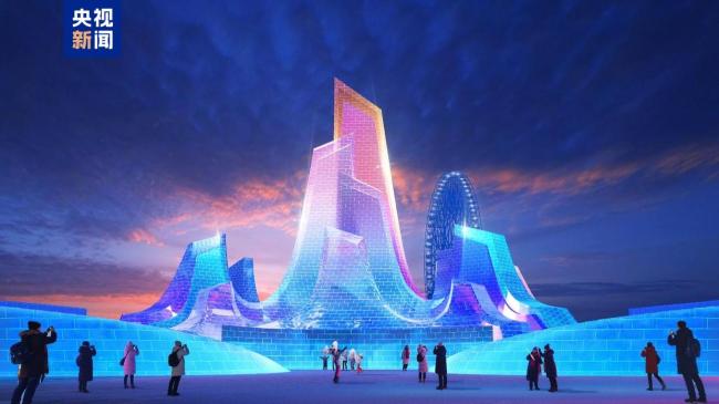哈爾濱冰雪大世界主塔已封頂 冰燈啟夢點亮夢想